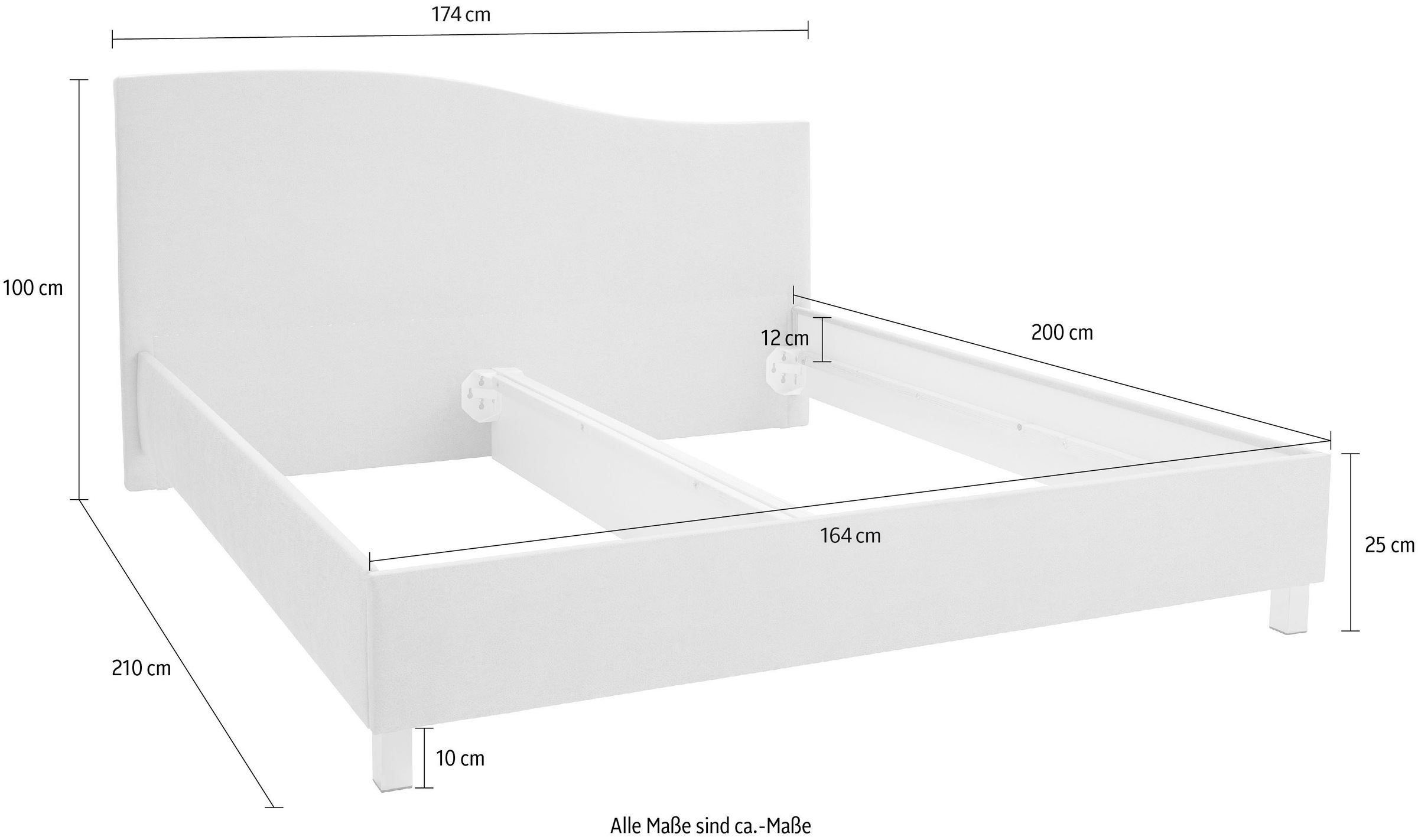 Geschwungenes Kopfteil in Lederoptik. Verchromte Metallfüße. Made in Germany